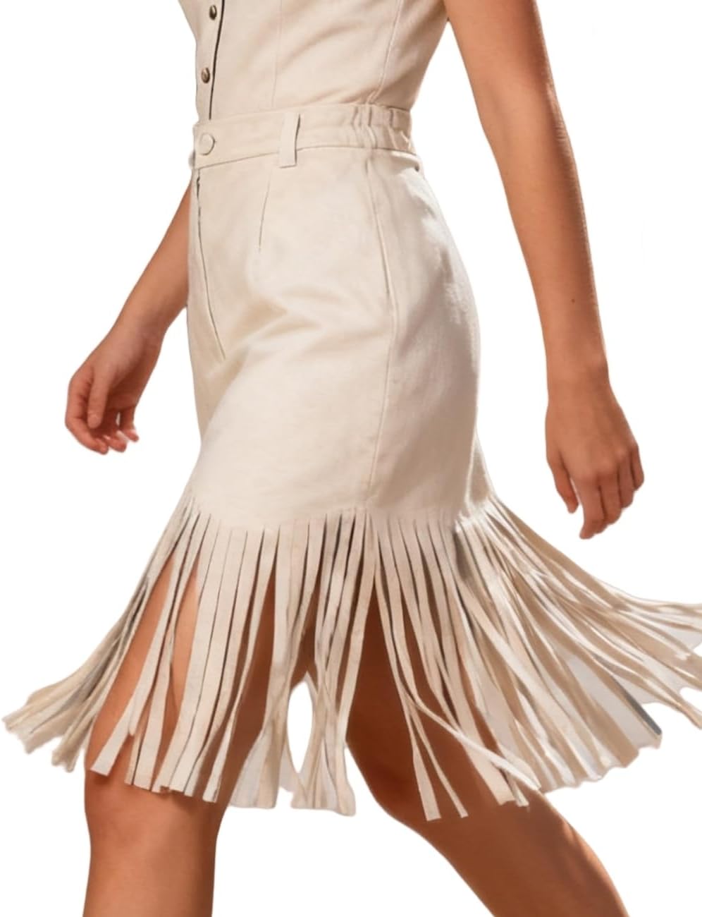 Apocrypha Womens Western Cowgirl Boho Fringe Faux Suede Skirts Trendy Casual Hippie Mini Country Concert Skirt
