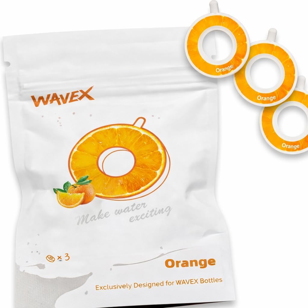 WAVEX 3-Pack Orange Aroma Scent Pods, Only Scent-Powered Water Bottles – Zero Sugar and Additives, Calorie-Free Hydration – Each Pod Lasts Up to 7L– Refill Scent Rings (Not a Food or Drink)