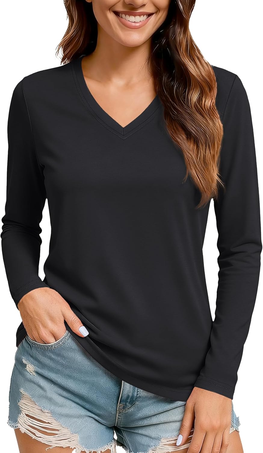 TACVASEN Women's Long Sleeve V Neck Tops Lightweight Quick Dry UPF 50+ Sun Protection Workout Hiking Running Shirts