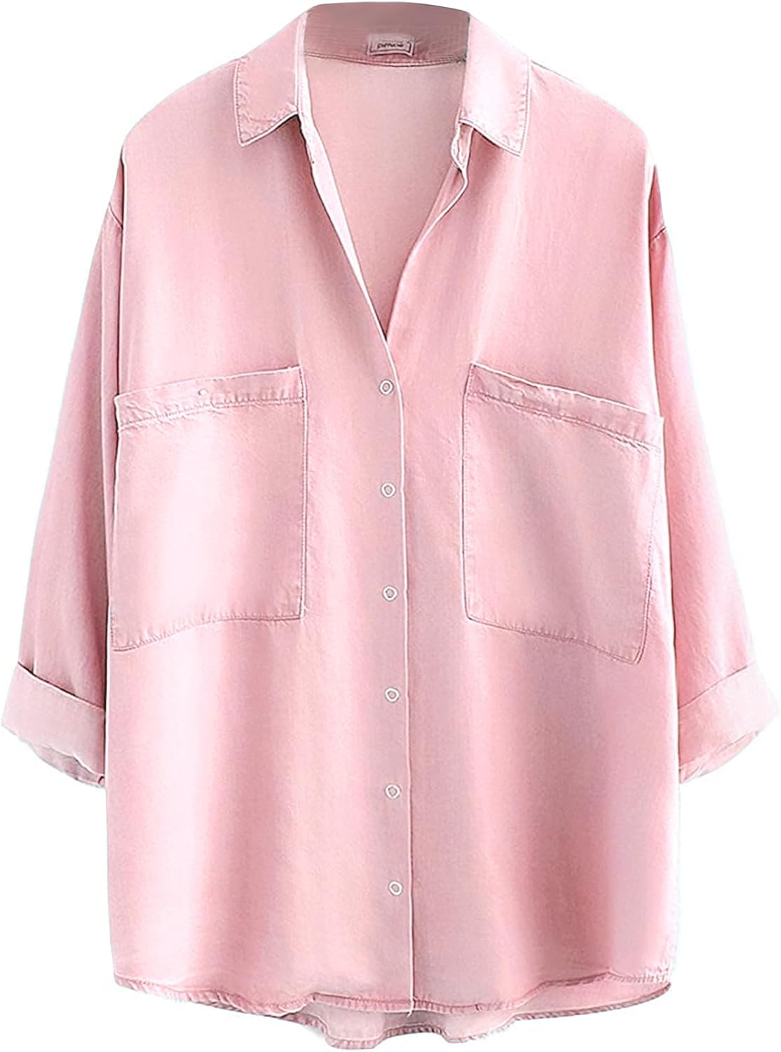 Yimoon Womens Denim Shirts Chambray Button Down Jean Shirt Denim Tencel 3/4 Sleeve Tops