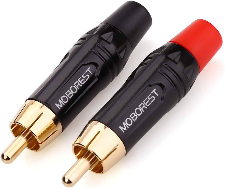 MOBOREST for RCA Male Plug Adapter Audio Phono Gold Plated Solder 24K Gold Speaker Plugs RCA Jack Cable Connector Adapter(RCA Male-2pack)