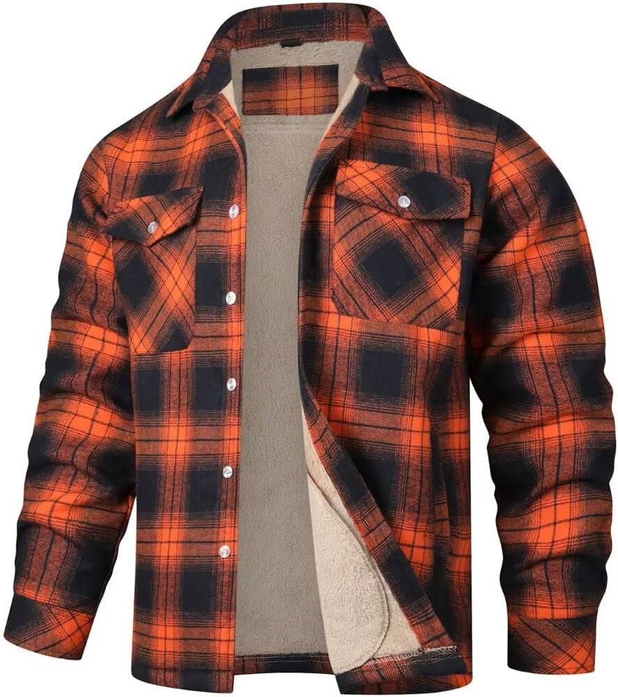 INVACHI Men's Flannel Jacket Plaid Sherpa Lined Flannel Shirt Snap Button Warm Winter Jackets Pockets