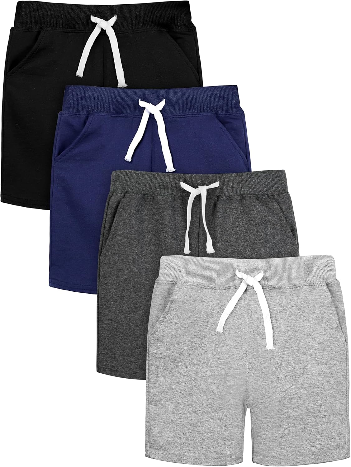 Resinta 4 Pack Toddler Boy Shorts Boys Cotton Shorts Soft Casual Elastic Waist with Pockets Drawstring Kids Summer Clothes