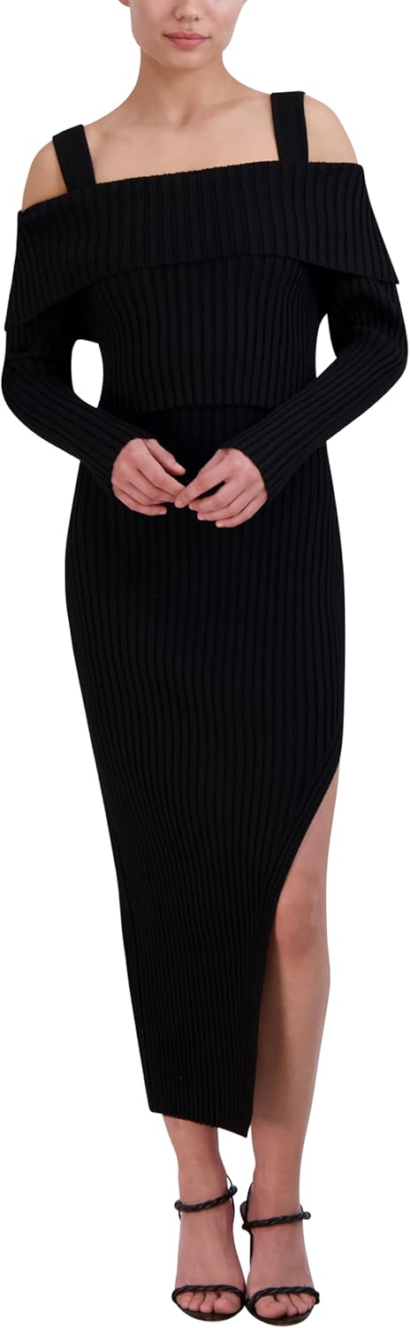 BCBGMAXAZRIA Women's Off Shoulder Long Sleeve Square Neck Two Piece Midi Sweater Dress