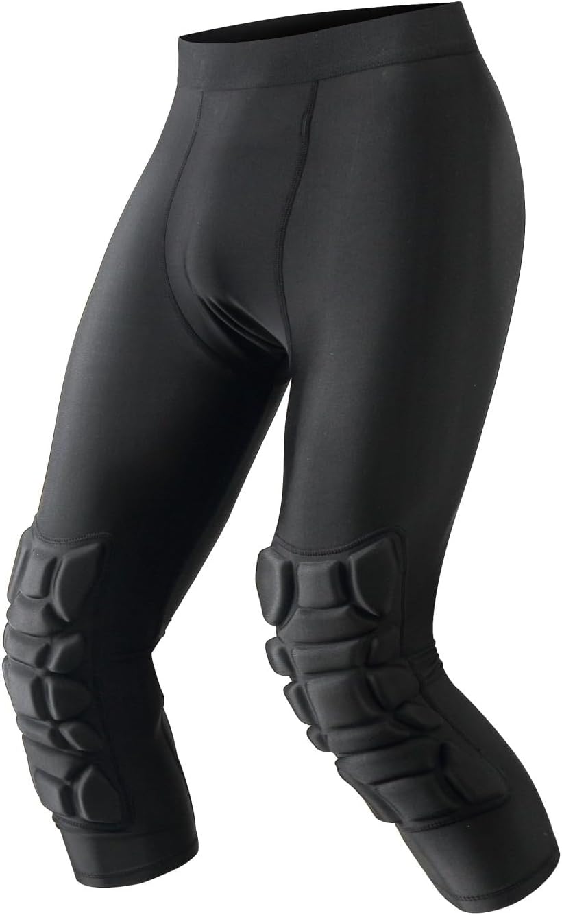 Men Basketball Leggings with Knee Pads, 3/4 Padded Compression Pants with Cup Pocket