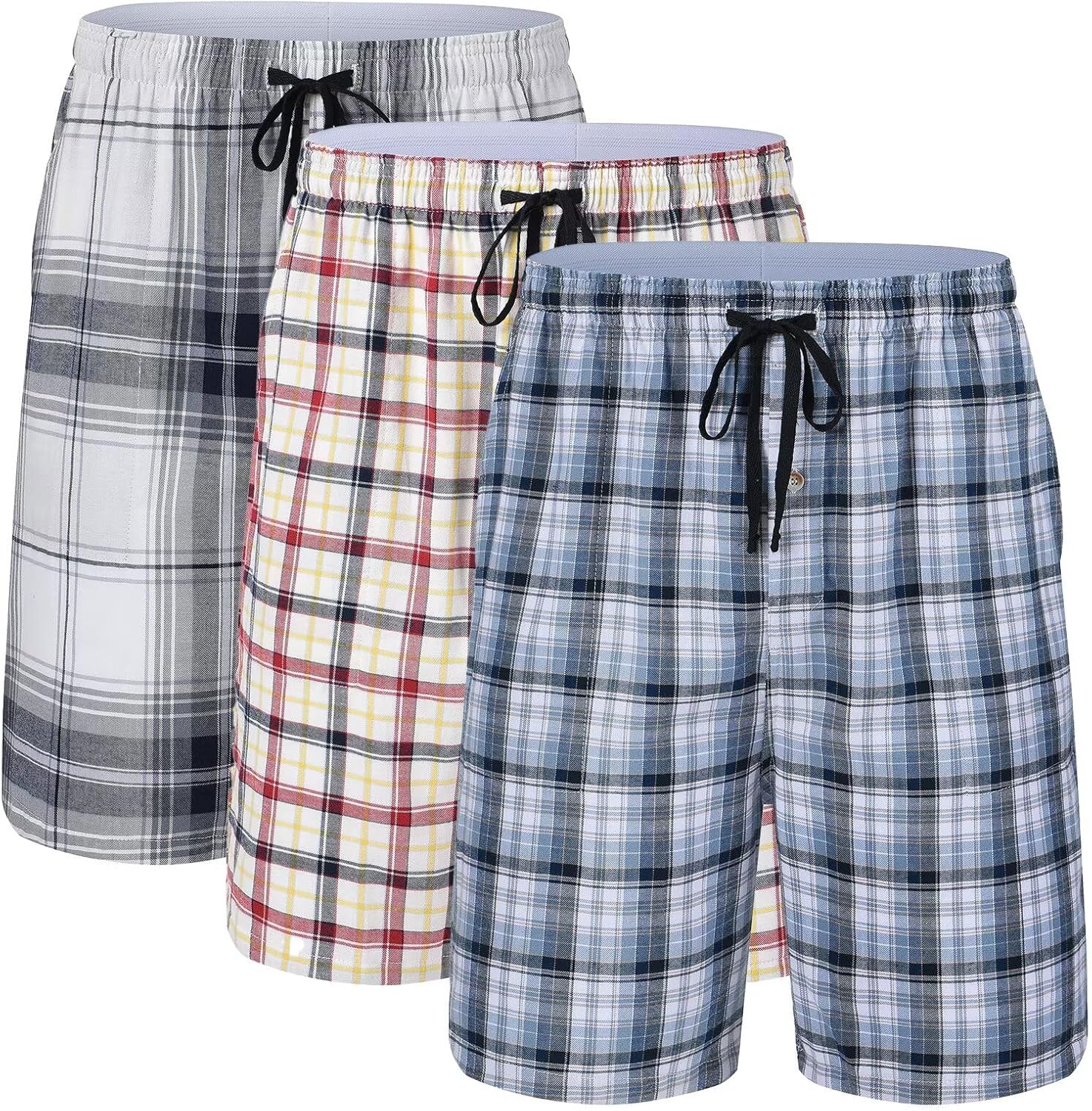 yuyangdpb Men's 3-Pack Woven Pajama Short Cotton Plaid Sleepwear Shorts Button Open Fly with Pockets