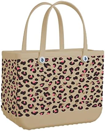 Rubber Beach Bag Waterproof Sandproof Outdoor Travel tote,for Beach,Sports,Market (Leopard Print)