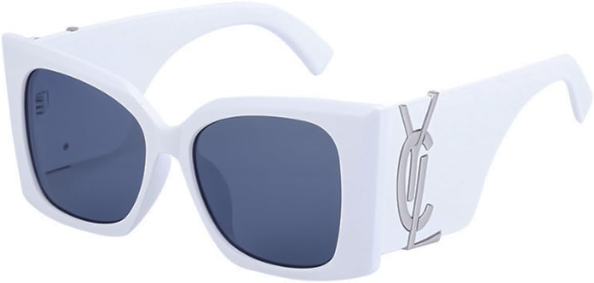 Women's Personality Oversized Cat Eye Sunglasses, Suitable for Photo, Driving, Fishing, UV Protection and Anti-Glare. (Gray/white frame)