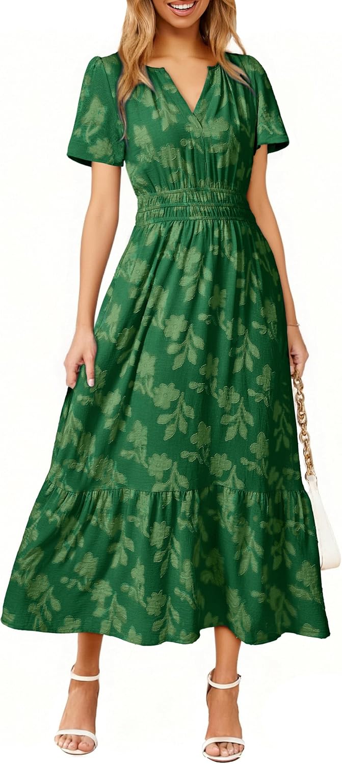 Simplee Womens Summer Boho Maxi Dress Semi Formal Wedding Guest Short Sleeve V Neck Empire Waist Floral Long Dresses