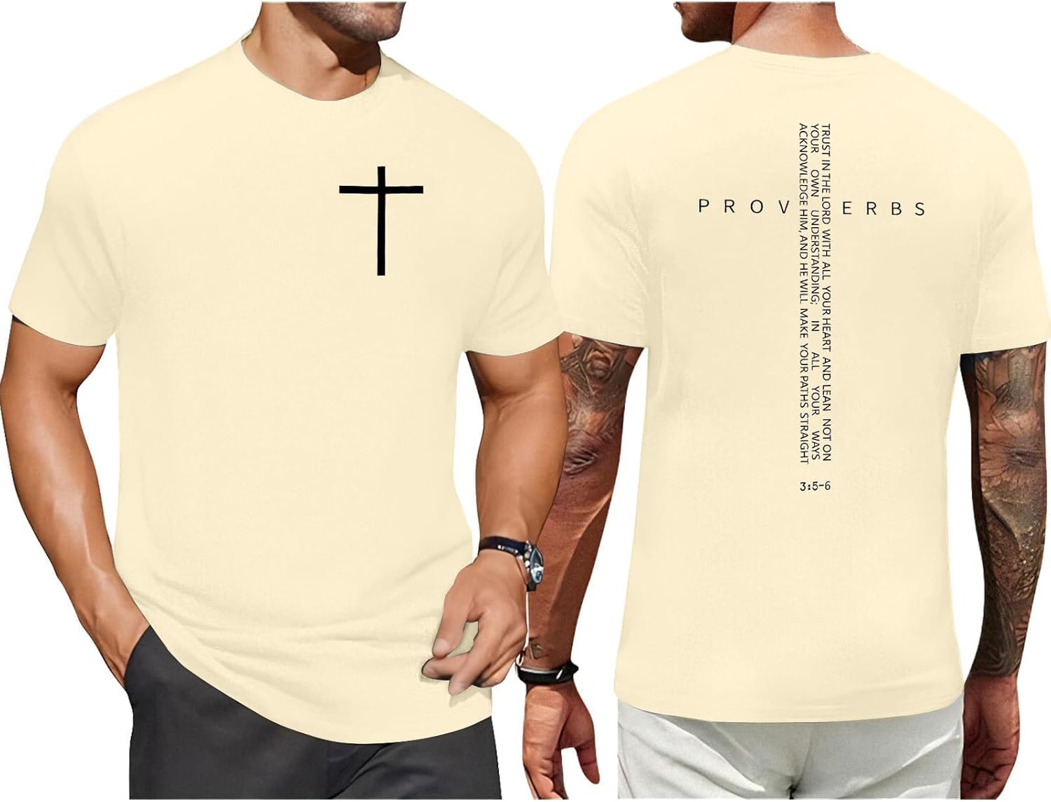 Christian Shirts for Men Vintage Religious Cross Bible Verse T-Shirt Jesus Faith Tshirt Inspirational Graphic Tees