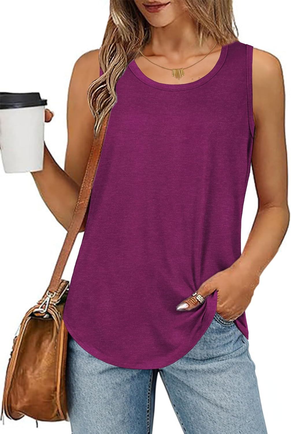 elescat Womens Tank Tops Summer Sleeveless Loose Fit Casual Tunic Top