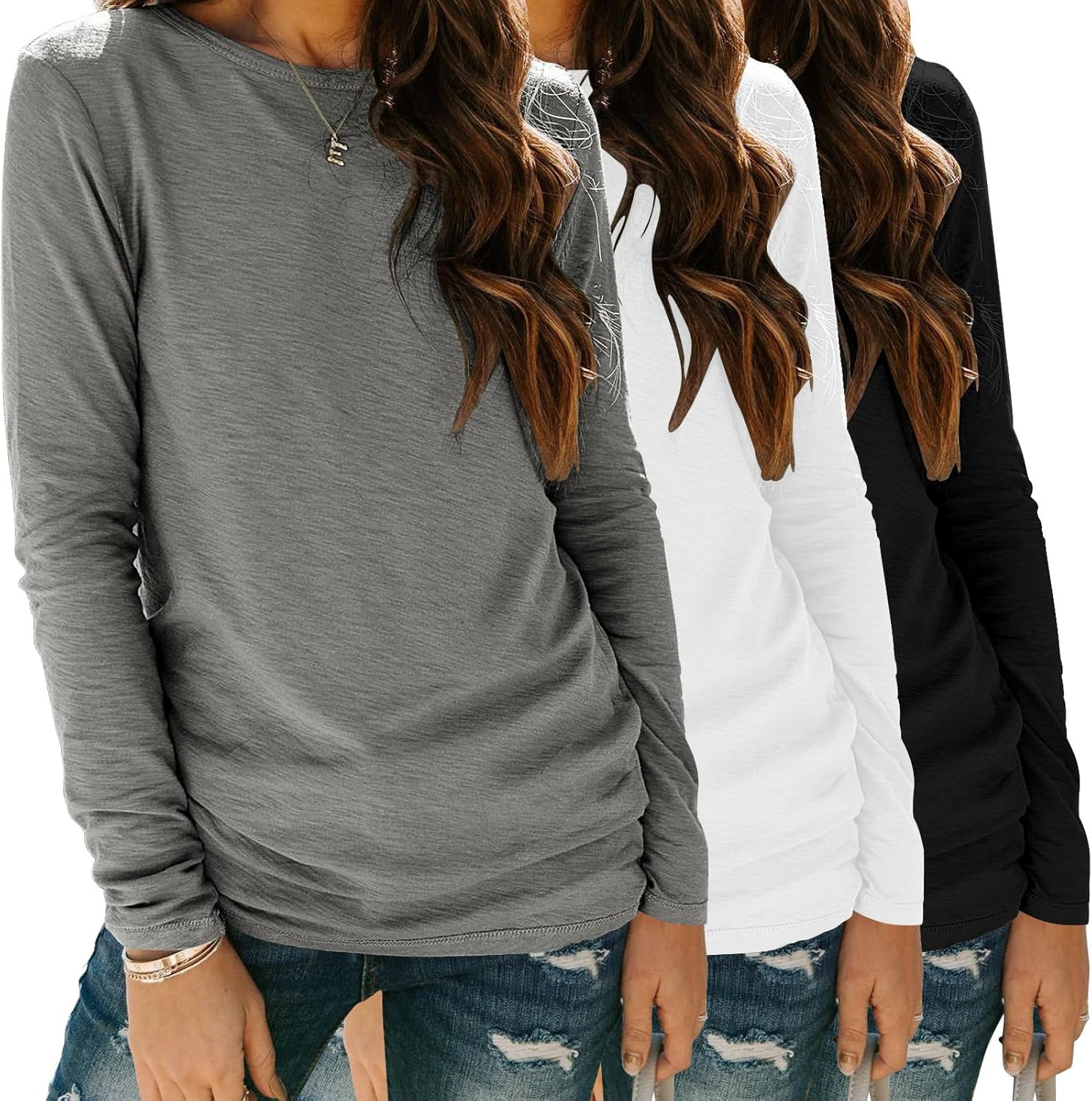 Zeagoo 3 Pack Long Sleeve Shirts for Women Casual Soft Crewneck Basic Tee Tops Fall Outfit Clothes
