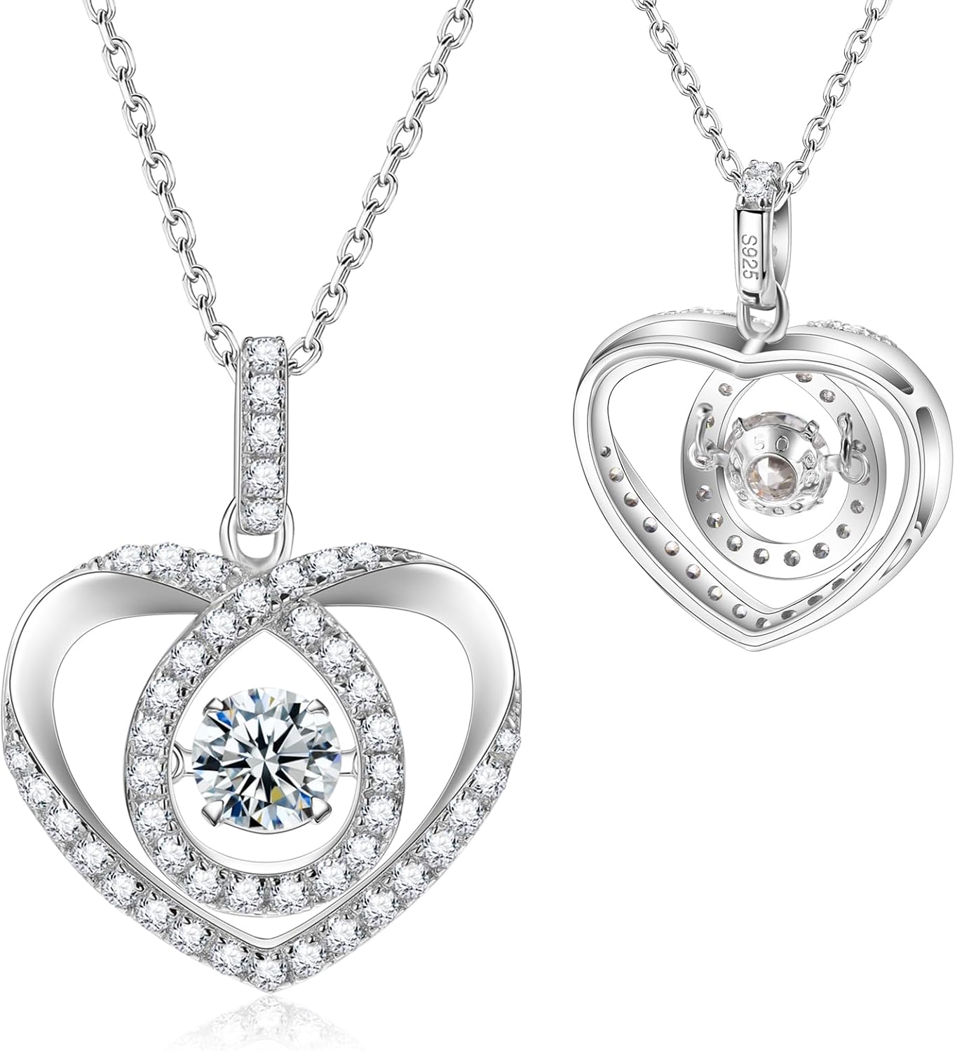 HMJ Diamond Floating Heart Necklace,Moissanite Dancing Pendent Chain for Women,S925 Sterling Sliver Lab Diamond Jewelry Halo Necklace Gifts for Valentine's Day Women Wife Mom