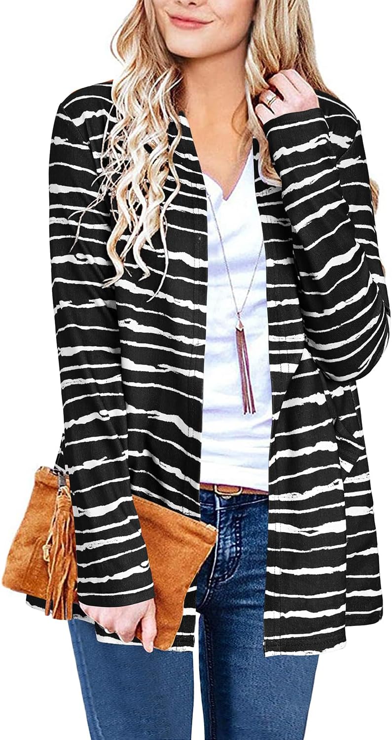 ULTRANICE Cardigan Sweaters Womens Fashion 2024 Trendy Lightweight Long Sleeve Casual Knitted Cardigans Sweater Tops Clothes Outfits with Pockets(Striped A,L)