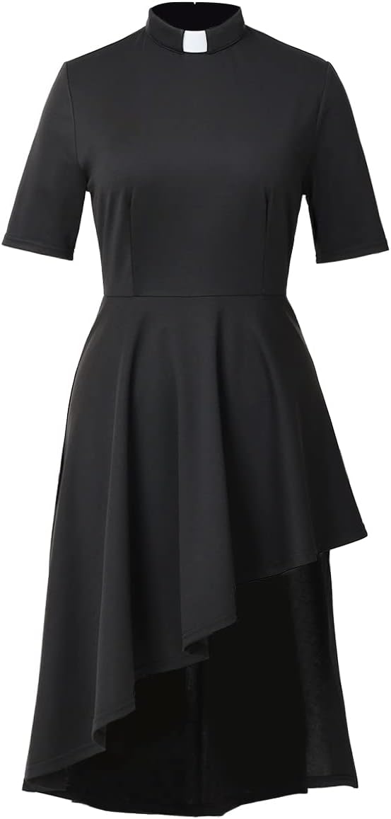 Women's Clergy Shirt Short Sleeve Asymmetrical Irregular Hem Ministers Blouse Casual Tops