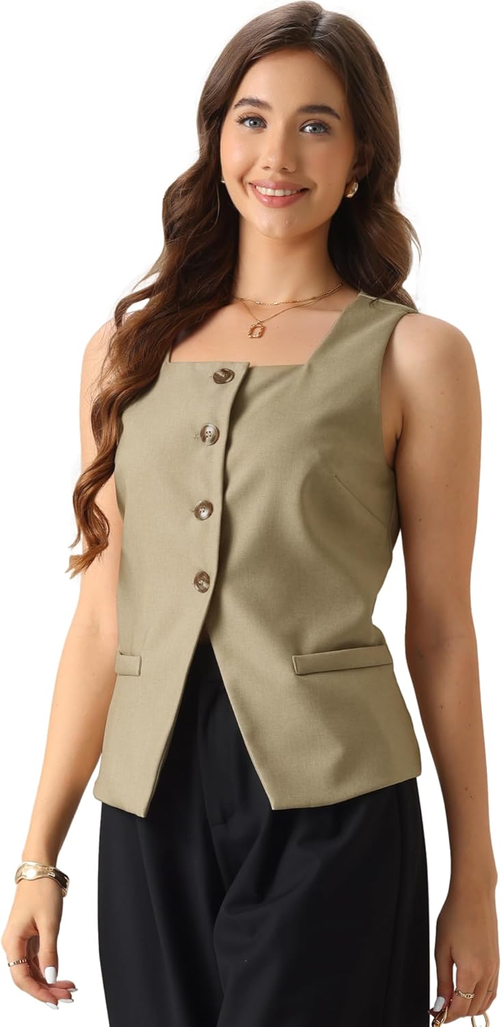 Allegra K Blazer Vest Top for Women's 2025 Trendy Button Down Sleeveless Suit