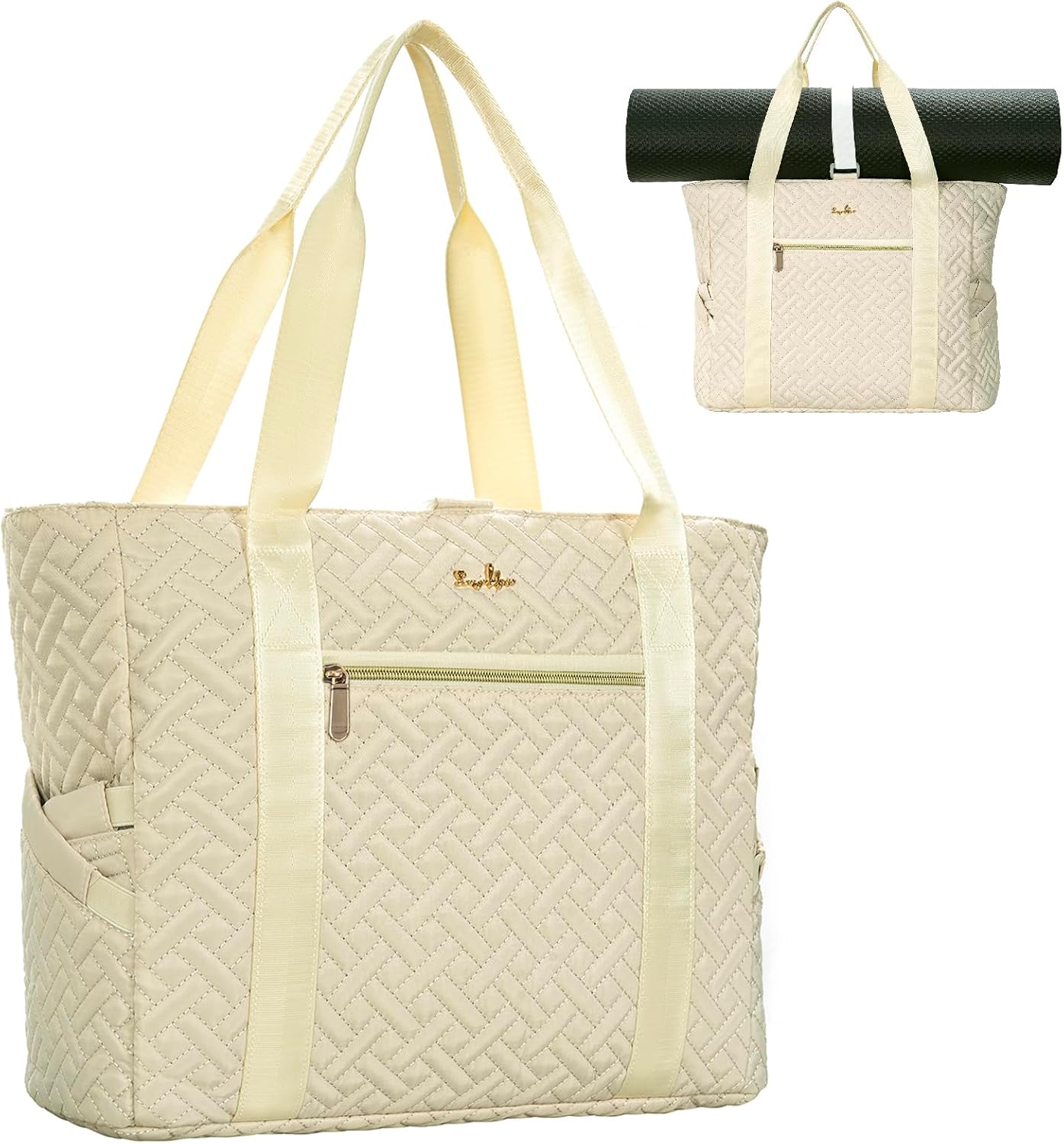 Tote Bag For Women, Checkered Zipper Laptop Shoulder Bag, Gym Tote Bag with Yoga Mat Bag, for Gym, Work, Travel, Shop