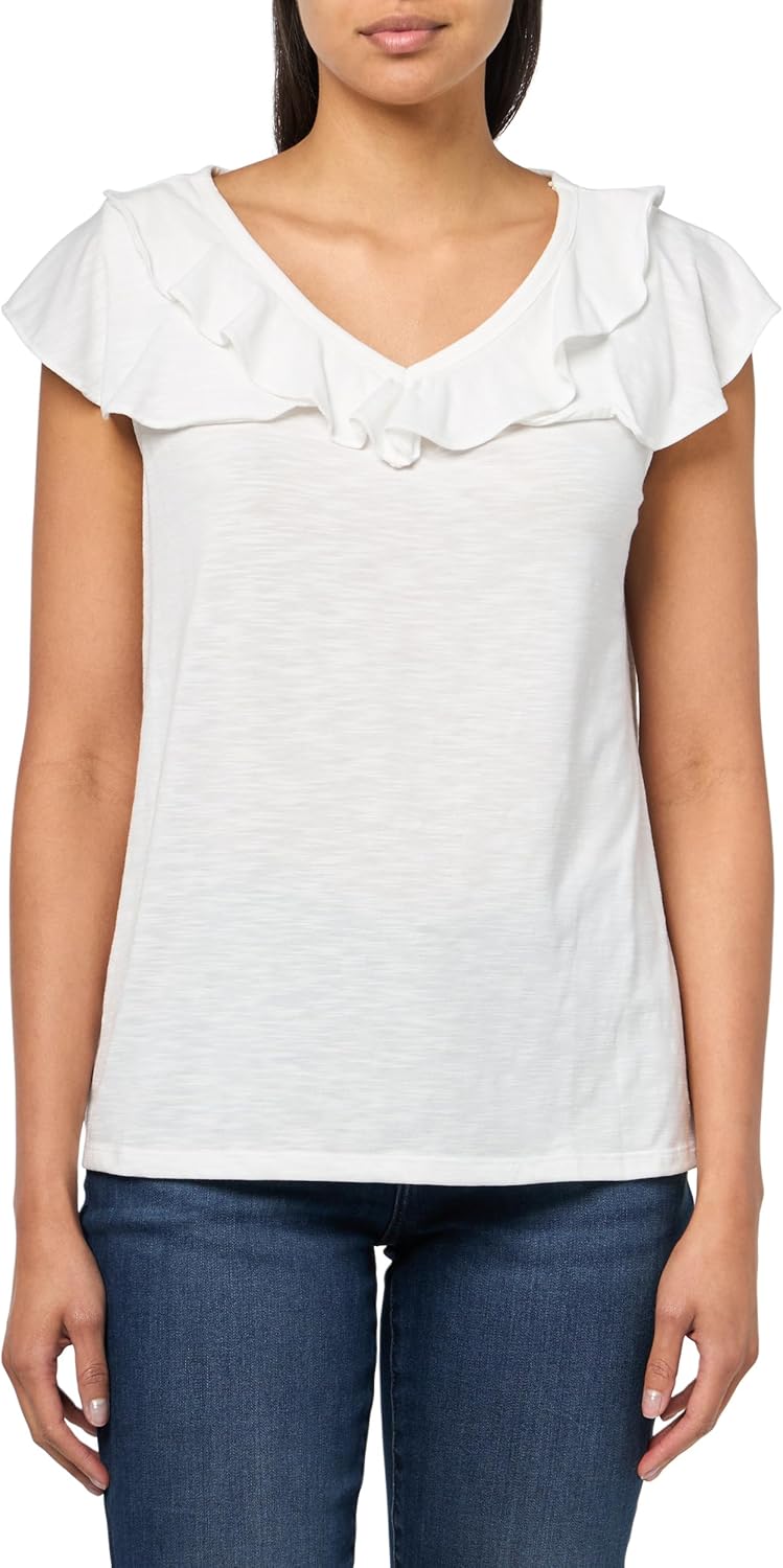 Jones New York Women's Drapey Slub Ruffle V Neck Tee