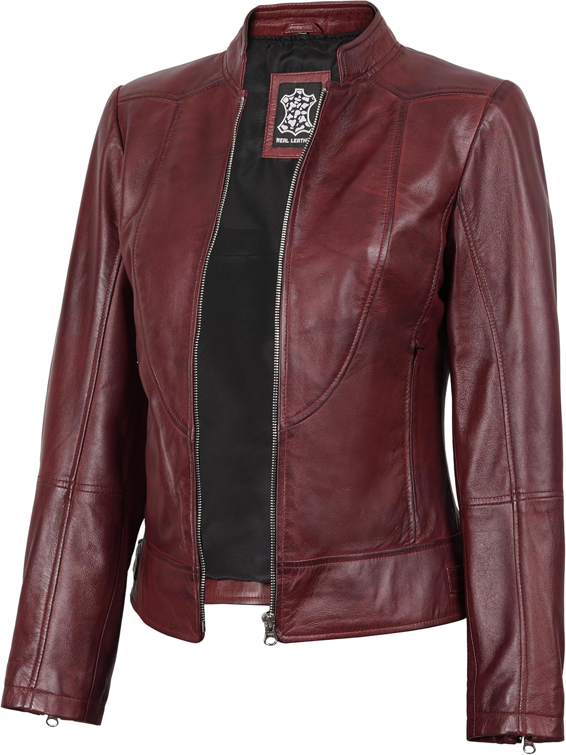 Blingsoul Disc Leather Jacket Women - Cafe Racer Real Lambskin Womens Leather Jacket