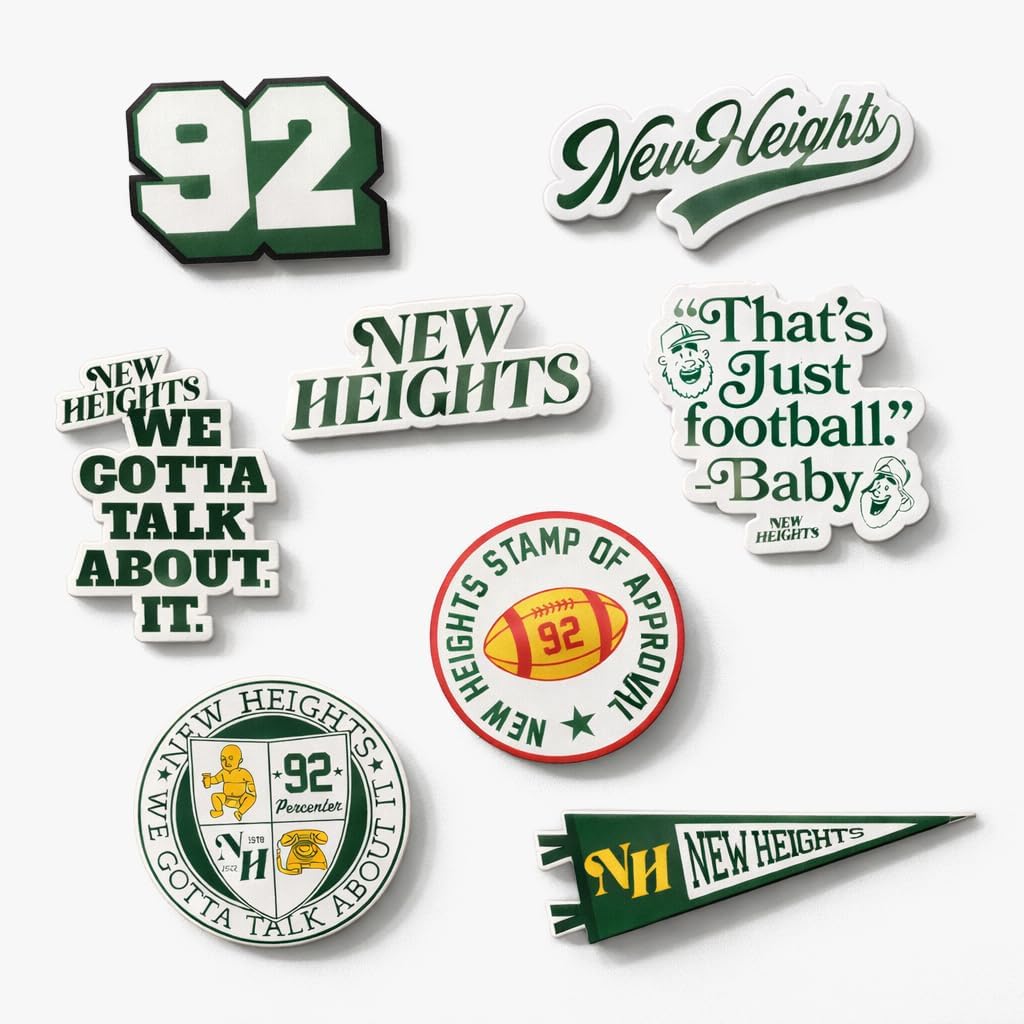 - NEW HEIGHTS OFFICIAL LICENSED STICKERS: Part of the New Heights Essentials collection, featuring eight unique stickers inspired by iconic moments, inside jokes, and classic podcast branding.