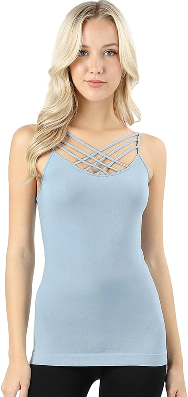 PacificPlex Womens Sleeveless Lattice Seamless Criss-Cross Front Layering Sexy Tops Camisole Cami Tank Top Solid for Women