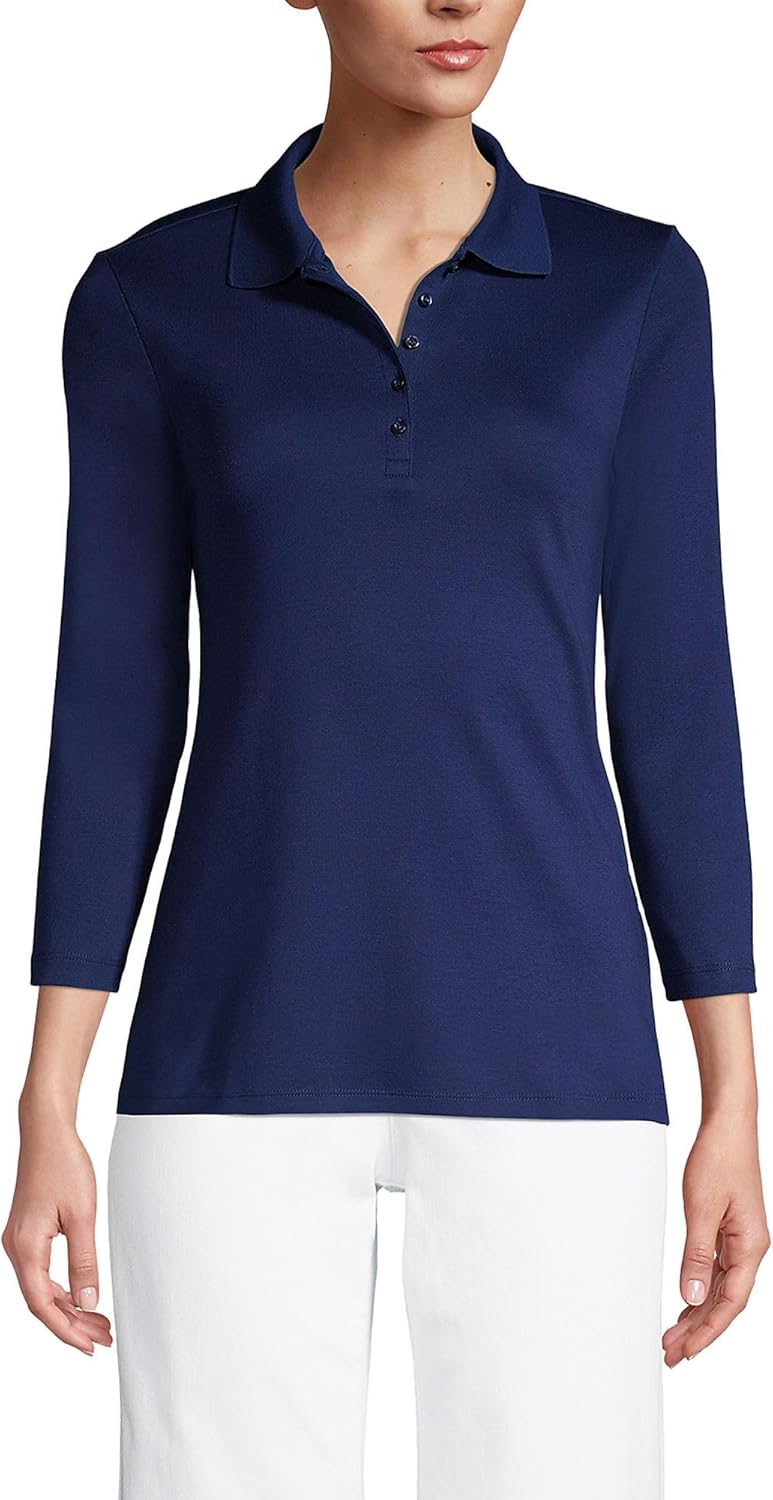 Lands' End Women's 3/4 Sleeve American-Grown Supima Cotton Polo Shirt