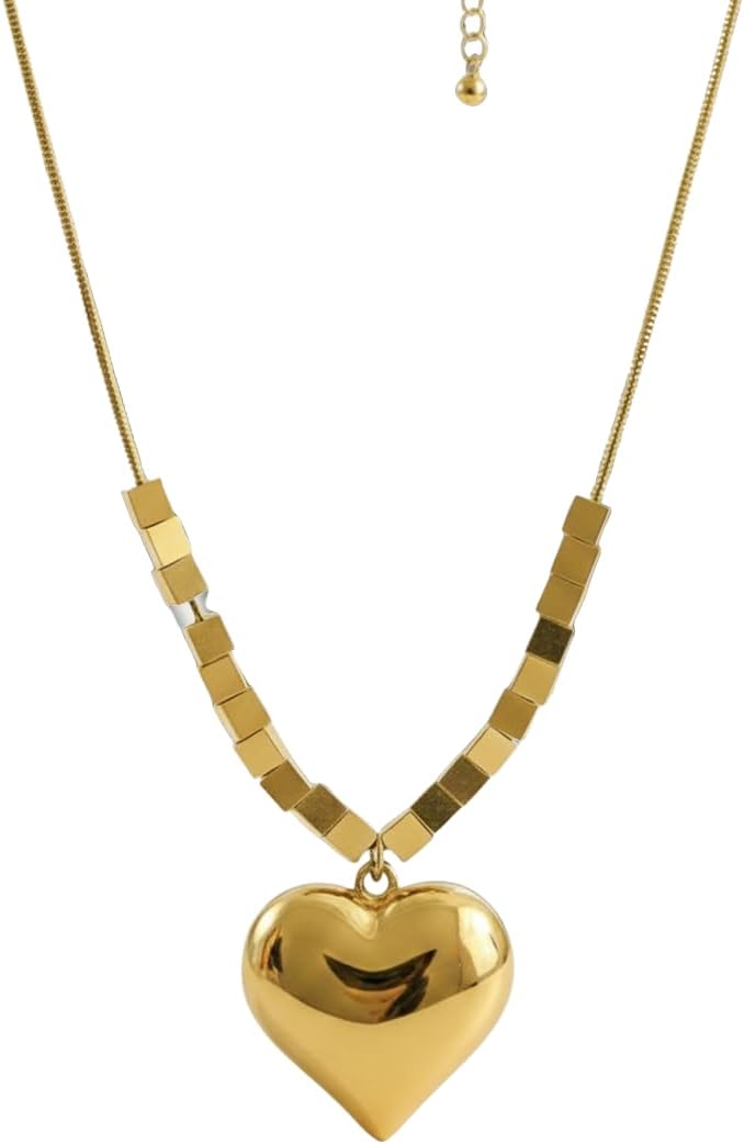 18k Puffy Gold Heart Necklace for Women - Stylish and Hypoallergenic Heart Necklace, Everyday Jewelry, Tarnish-Resistant and Durable, Great Gift for Any Occasion