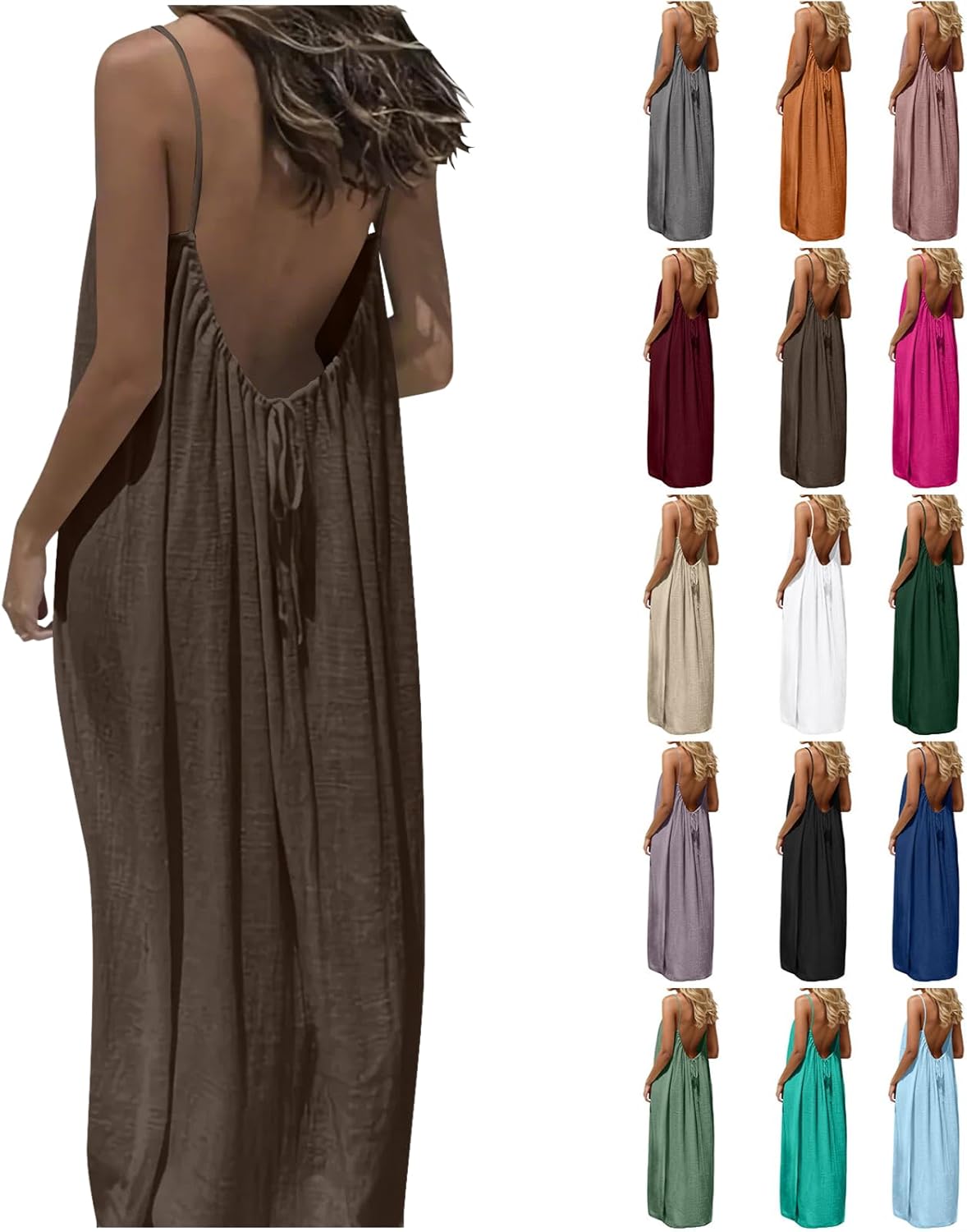 Backless Cami Dresses for Women Cami Lounge Dress Backless Sleeveless House Dress Long Sundress with Back Tie