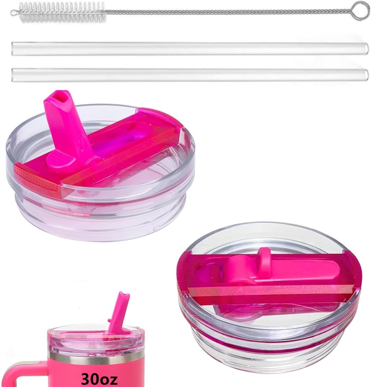 2 Pack Replacement Lid for Stanley 40 oz Quencher H2.0 & ProTour, Flip Straw Tumbler Lid for Stanley Cup, Leakproof, No Spill & Easy to Use Reusable Tumbler Cover (Hot Pink)
