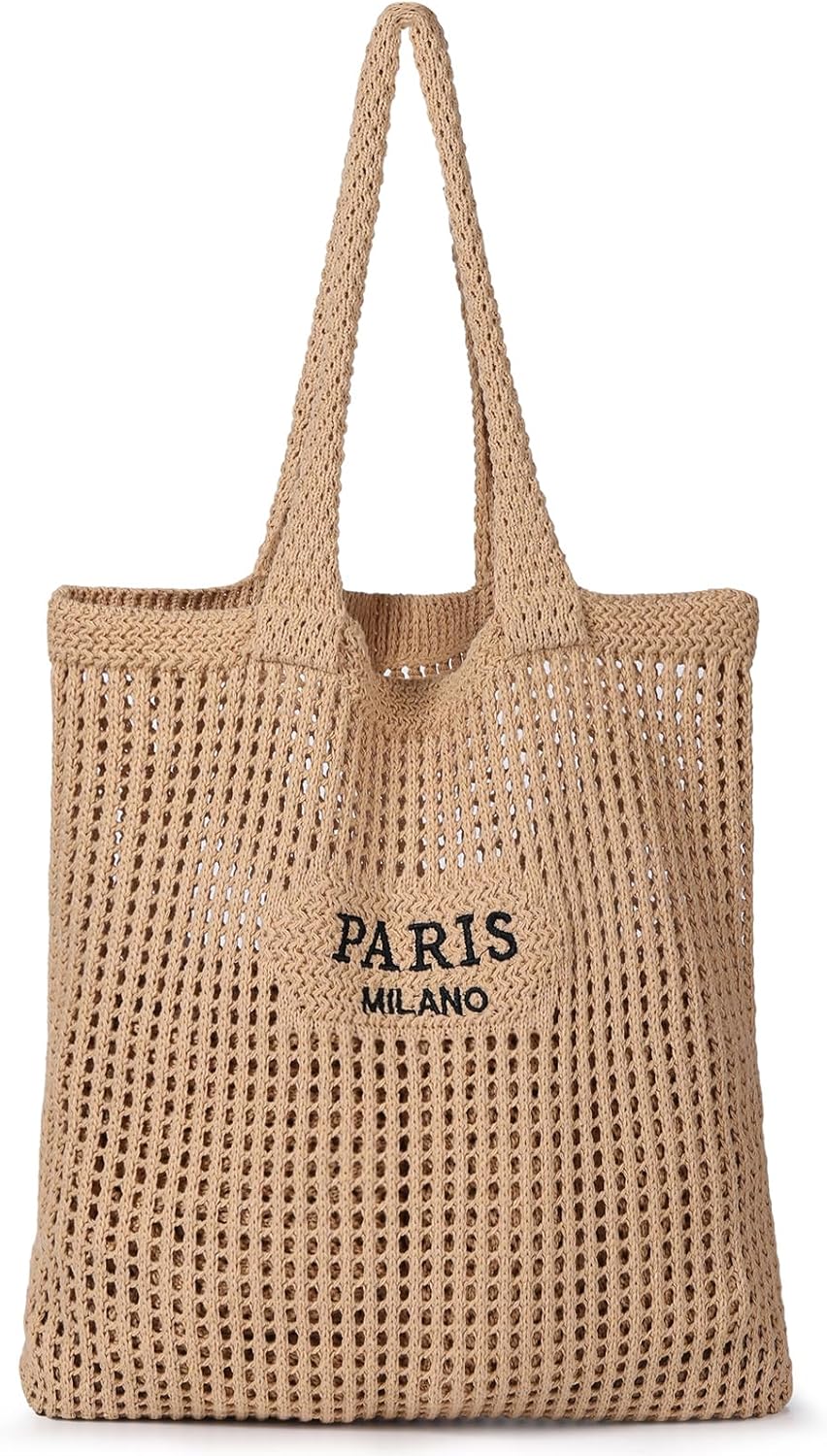 Sightor Crochet Tote Bag, Mesh Beach Bag Knit Summer Hobo Bag Vacation Boho Tote Bag for Women