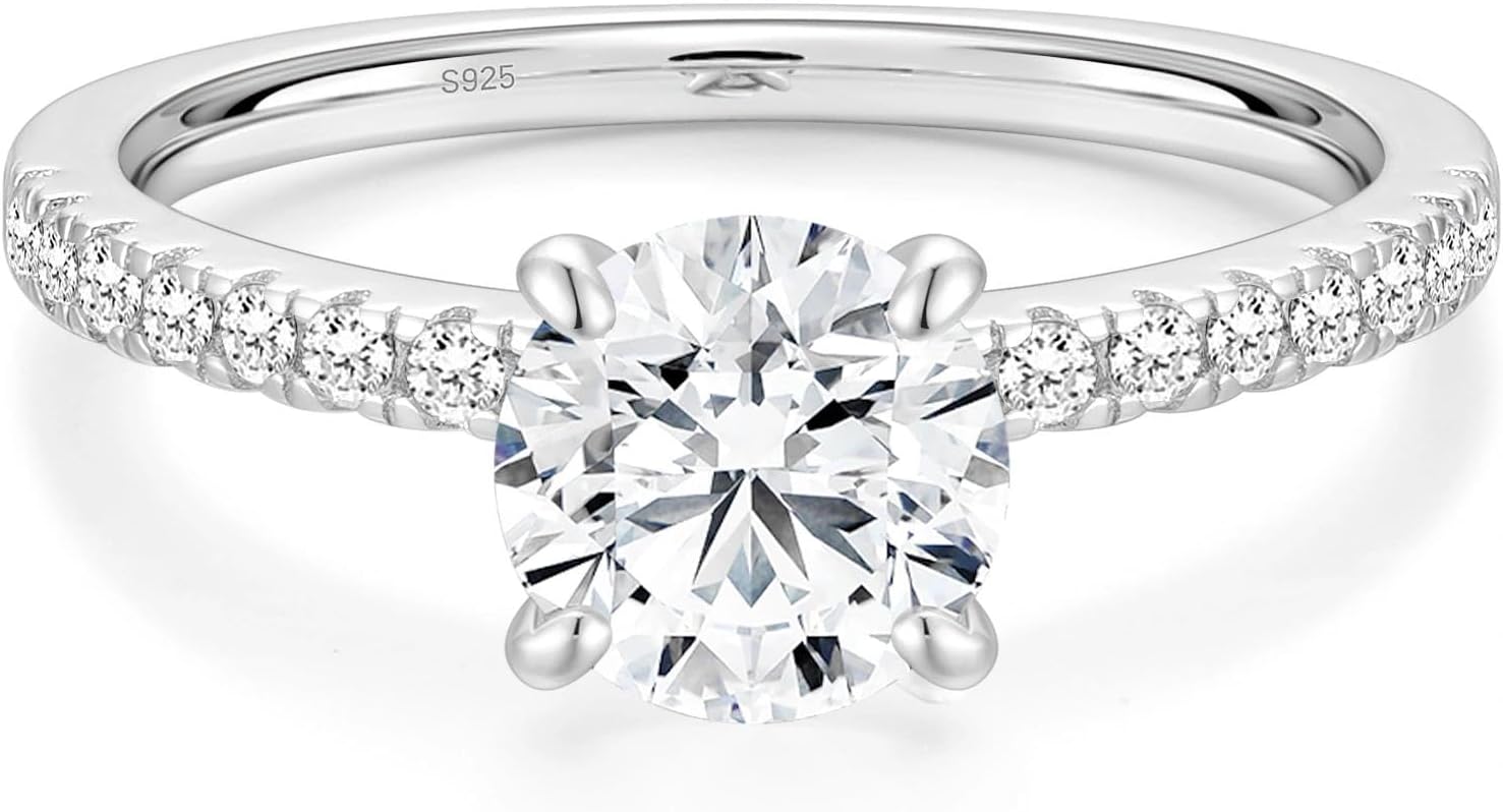 EAMTI 925 Sterling Silver 1.2 CT Round Solitaire Cubic Zirconia Engagement Ring Halo Promise Ring Size 3-13