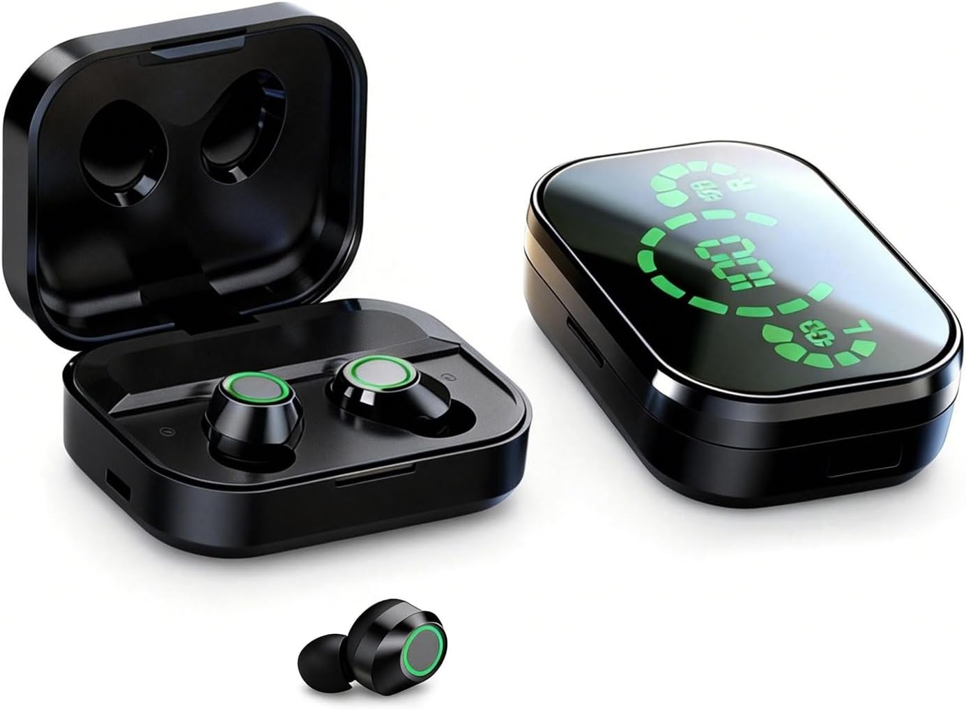 - 🔋[Long Battery Life & LED Power Display] These wireless bluetooth earbuds feature a unique smart digital LED display, and the charging case displays the power level from 1% to 100%, so you can see the power consumption at a glance. These waterproof sports earbuds can play for 4-5 hours and up to 45 hours of continuous play after 2 hours of full charge with the charging case. In addition, it can be used as an emergency charger when your phone runs out of battery!