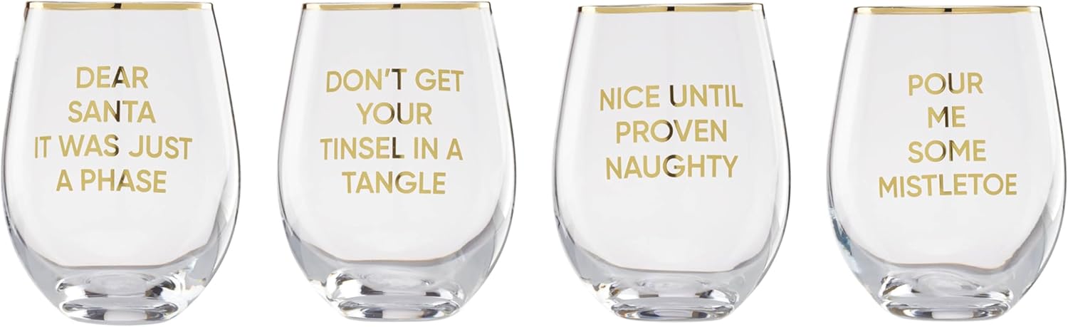 Cambridge 896287 Dear Santa Stemless Wine Glasses, Set Of 4