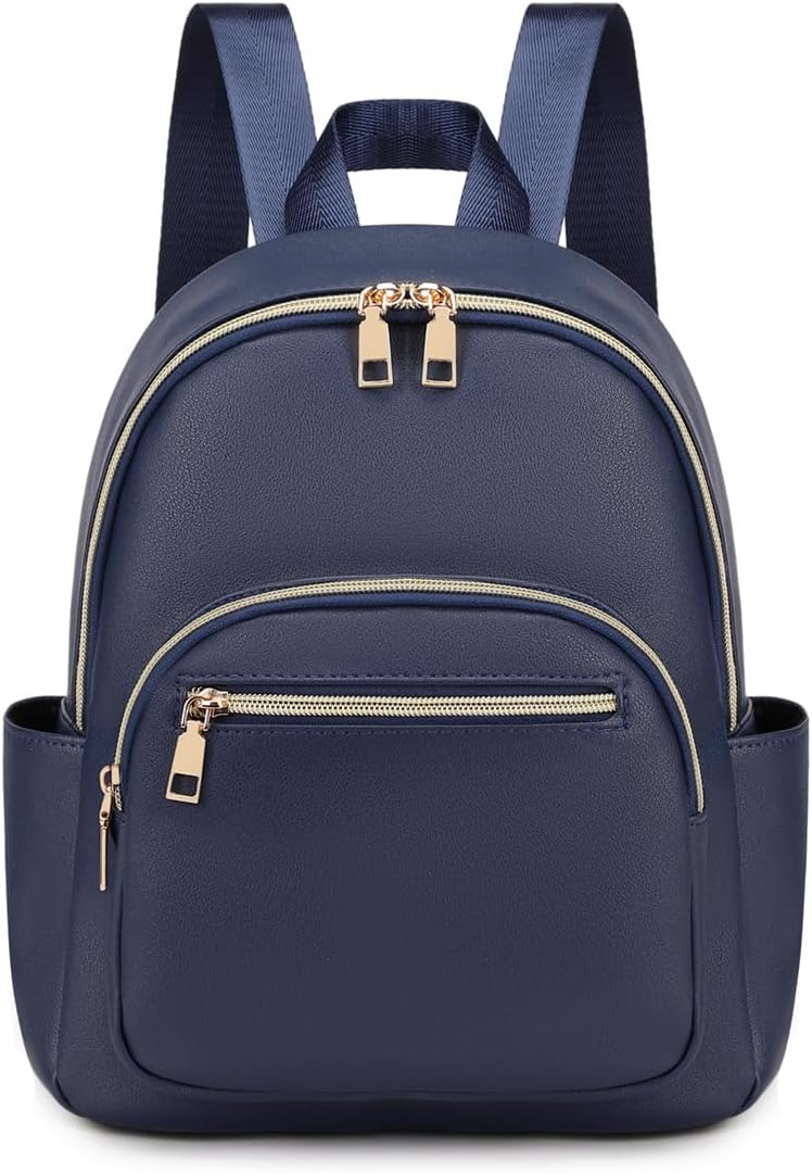 Mini Backpack Purse for Women PU Leather Small Backpack Fashion Multi Pockets Casual Daypacks Ladies Travel Shoulder Bags Navy