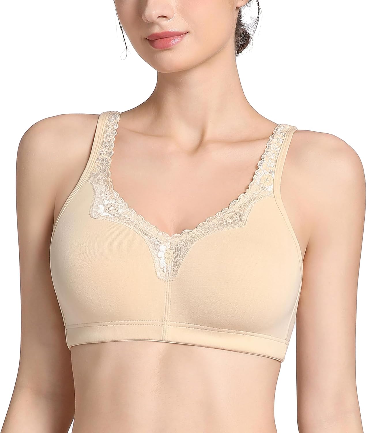 Lemorosy Women's Plus Size Non Padded Cotton Minimizer Wireless Everyday Comfort Bra