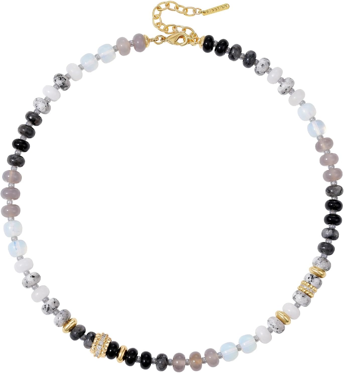 KissYan Beaded Necklaces for Women, Adjustable Natural Gemstone Choker with 14K Gold Plated Cubic Zirconia Beads Handmade Jewelry Gift