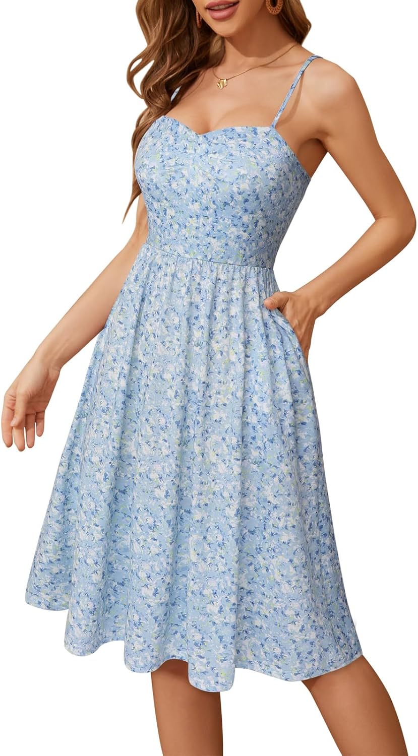 Sureple Summer Dresses for Women 2025 Casual Sweetheart-Neck Empire Waist Swing Aline Spaghetti Strap Dress with Pockets
