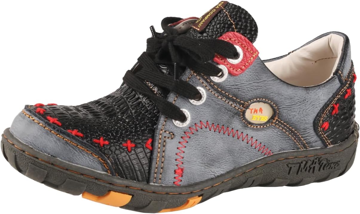 TMA EYES Women's Lace up Flat Leather Shoes With Patchwork Leather Design And Anti Slip Sole