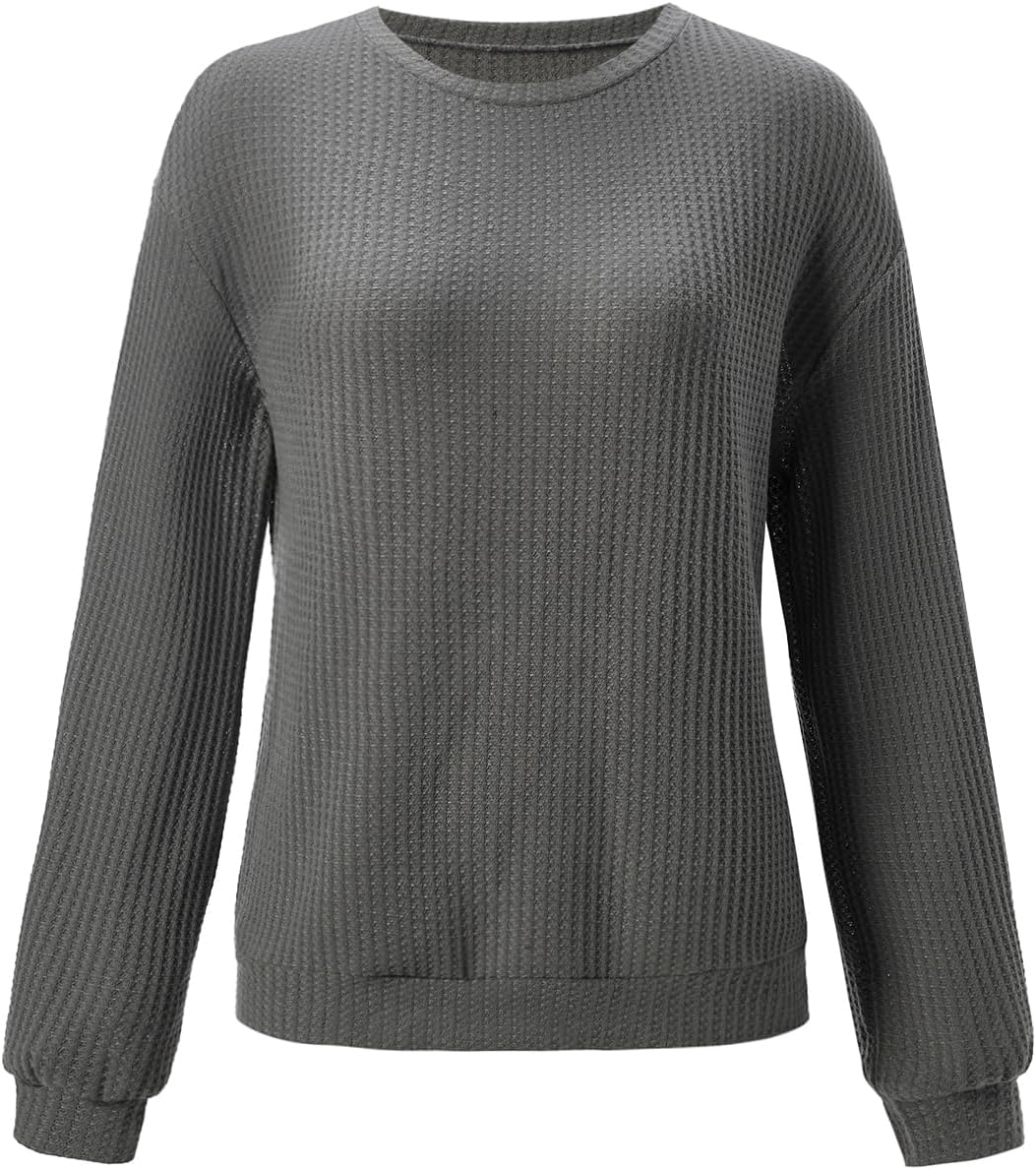 Women's Crew Neck Waffle Knit Sweater Dressy Casual Long Sleeve Loose Work Pullover Tops