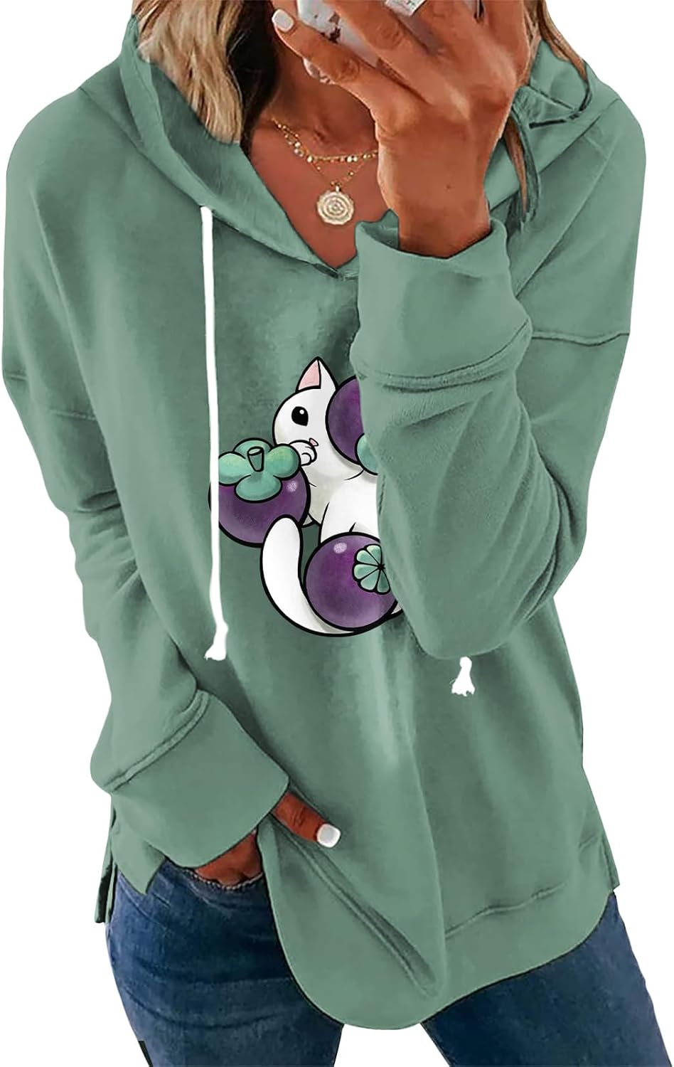 Womens Black Floral Print Hoodie Long Sleeve Cotton Blend Pullover Sweatshirt Loose Fit Casual Top For Everyday Wear