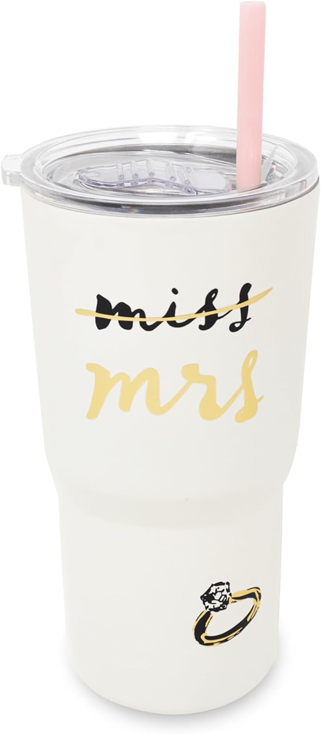 kate spade new york 20 Ounce Insulated Tumbler for Cold and Hot Drinks with Reusable Straw, Stainless Steel Travel Cup with Slide Top Lid (Miss to Mrs.)