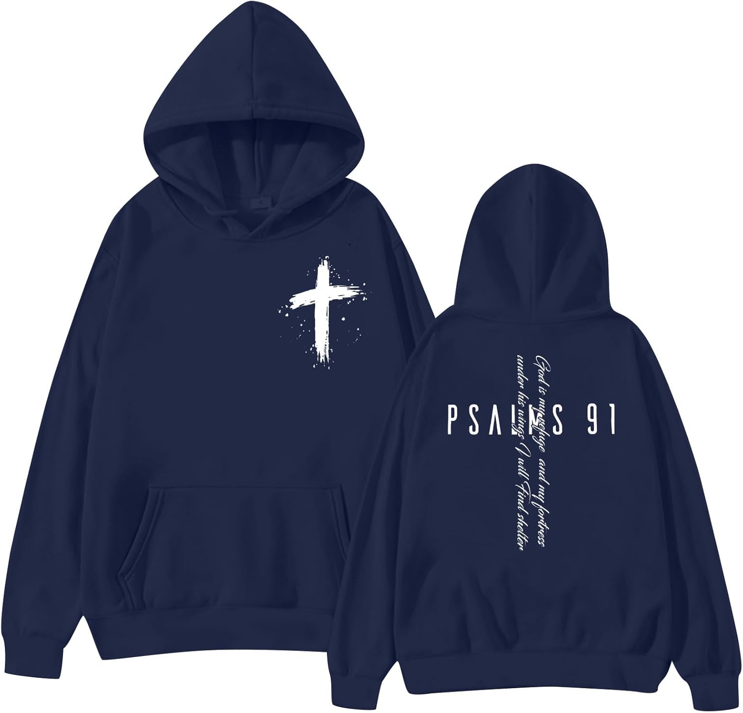 MOUSYA Aesthetic Christian Sweatshirt Woman Trendy Bible Verse Hoodie Psalms 91 Shirt Faith Long Sleeve Pullover Tops
