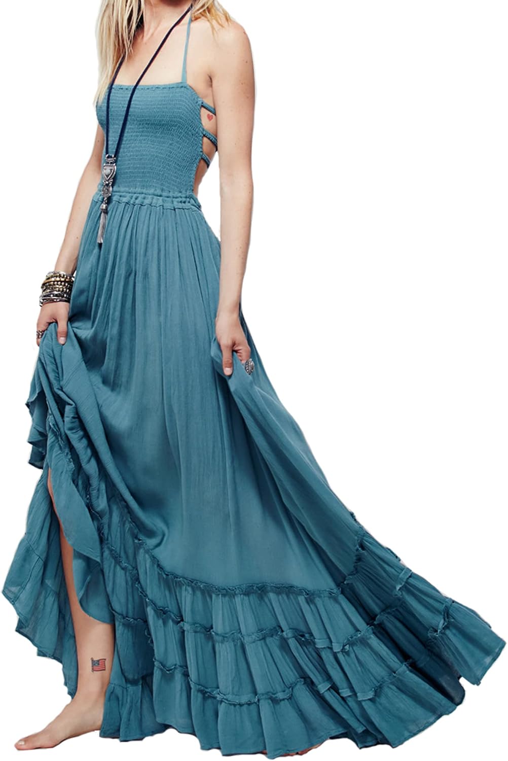 VERGOODR Women's Cotton Sexy Sleeveless Boho Beach Backless Long Bohemian Dress