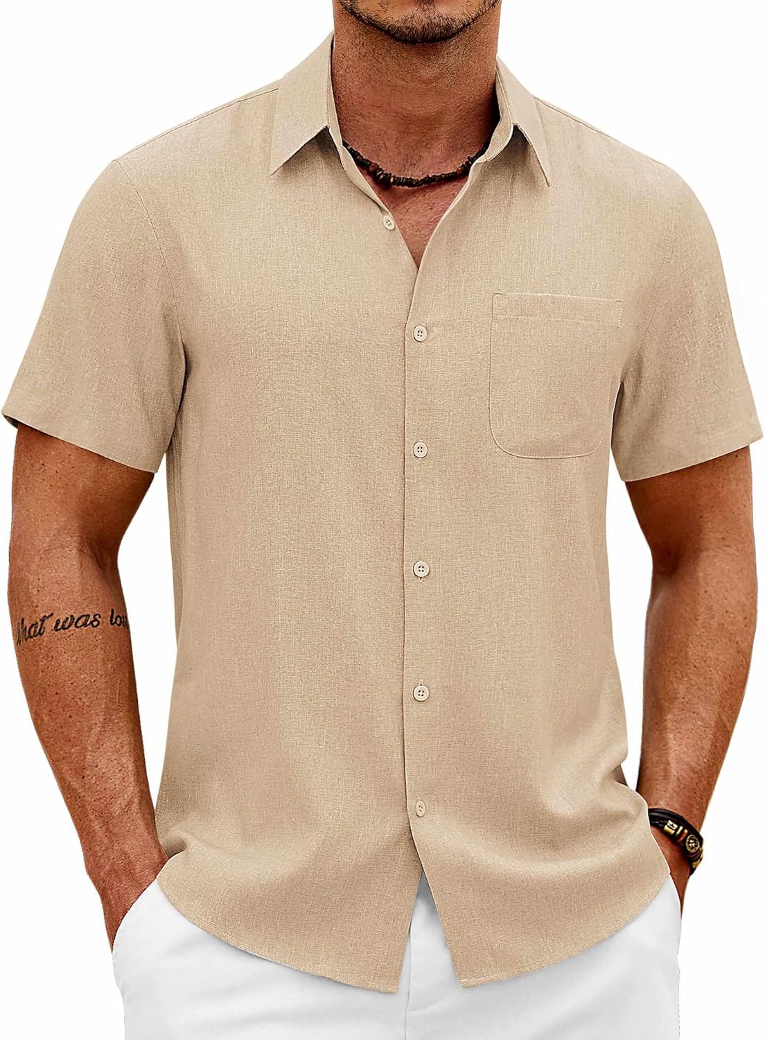 COOFANDY Mens Button Down Shirt Short Sleeve Casual Shirts Summer Beach Wedding Linen Shirt with Pocket