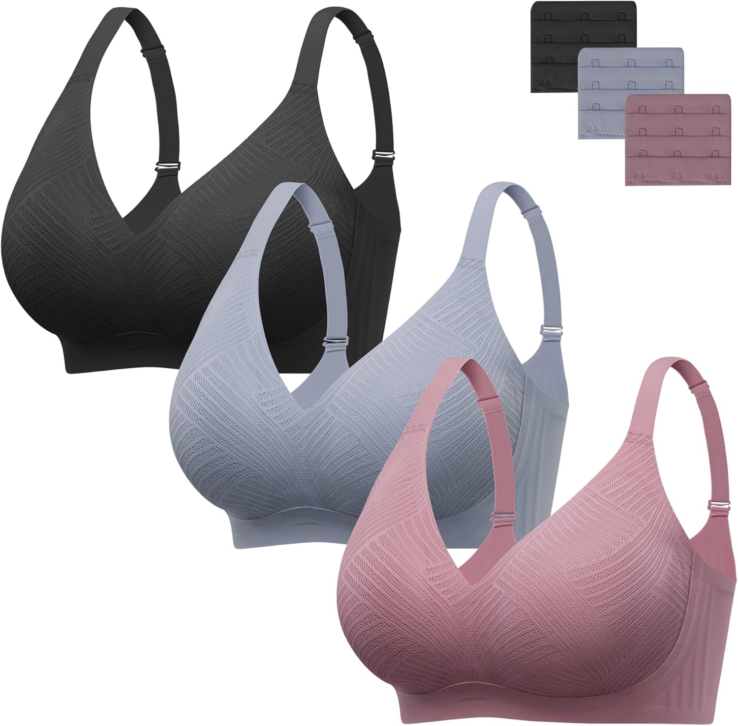 Angelhood Bras for Women Lace V Neck Seamless Wireless No Underwire Supportive Pushup Bralette Comfortable T Shirt Bra