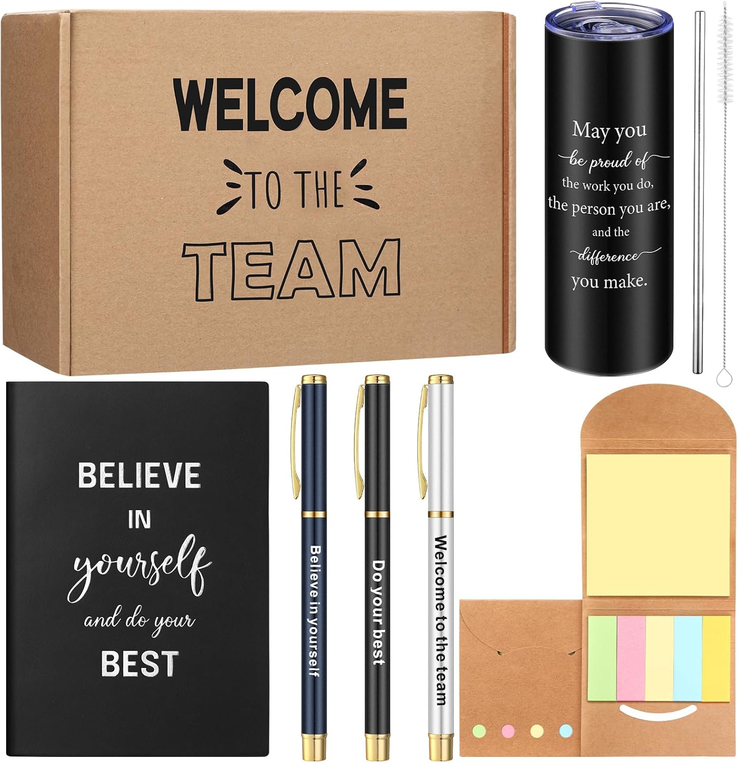 - Package Included: the set includes 1 20 ounce black tumbler, 1 notebook, 3 pens and 1 sticky note, as well as a gift box with "welcome to the team" written on it, all packed in a complete gift box, this is an ideal new employee welcome gift set