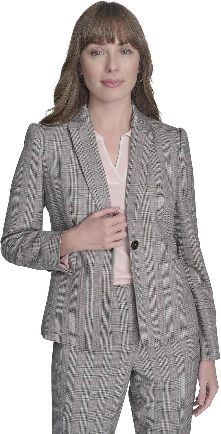 Tommy Hilfiger Womens Puff Sleeve Plaid Blazer Jacket Sportswear Jackets