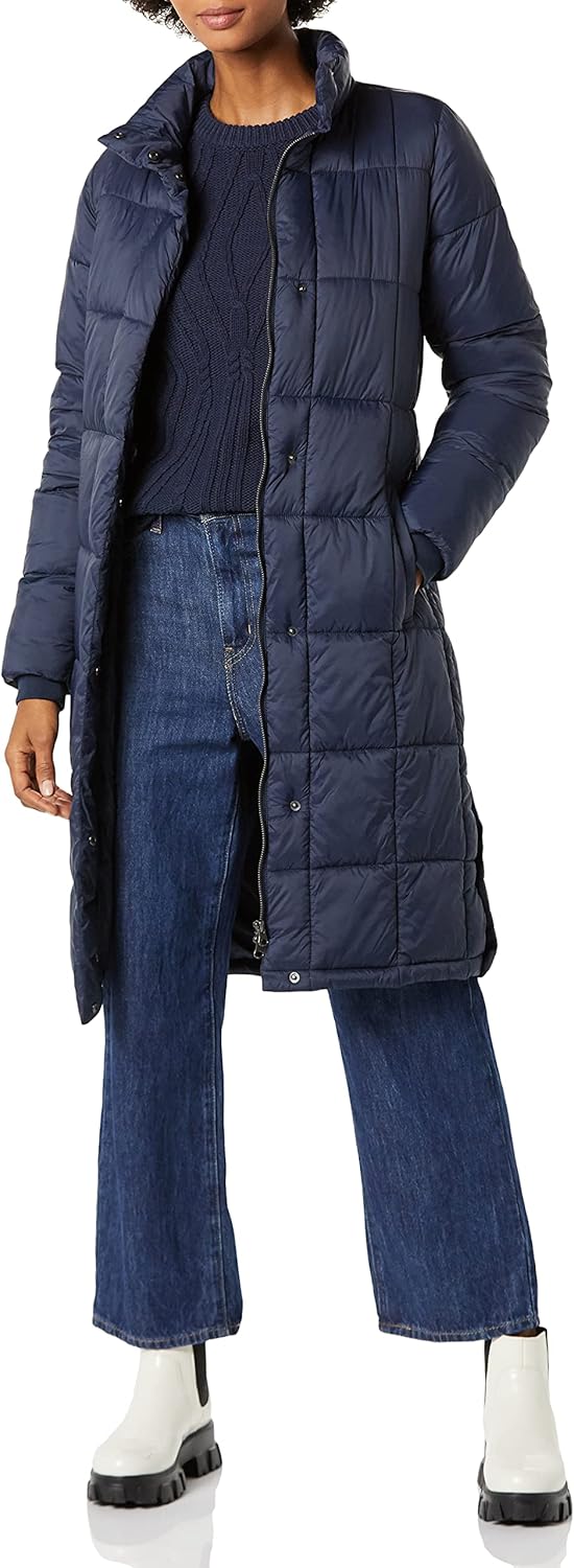 Amazon Essentials Women's Lightweight Quilted Longer Length Coat, Navy, X-Small