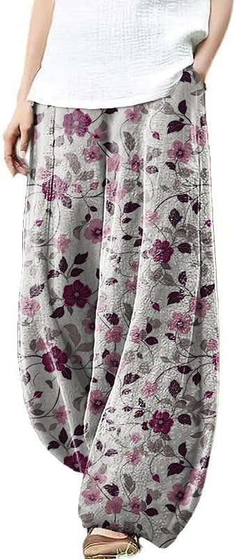 MARSVOVO Women's Palazzo Pants Dressy Casual Elastic Waist Hippie Pants Japanese Art Loose House Outdoor Pants Plus Size