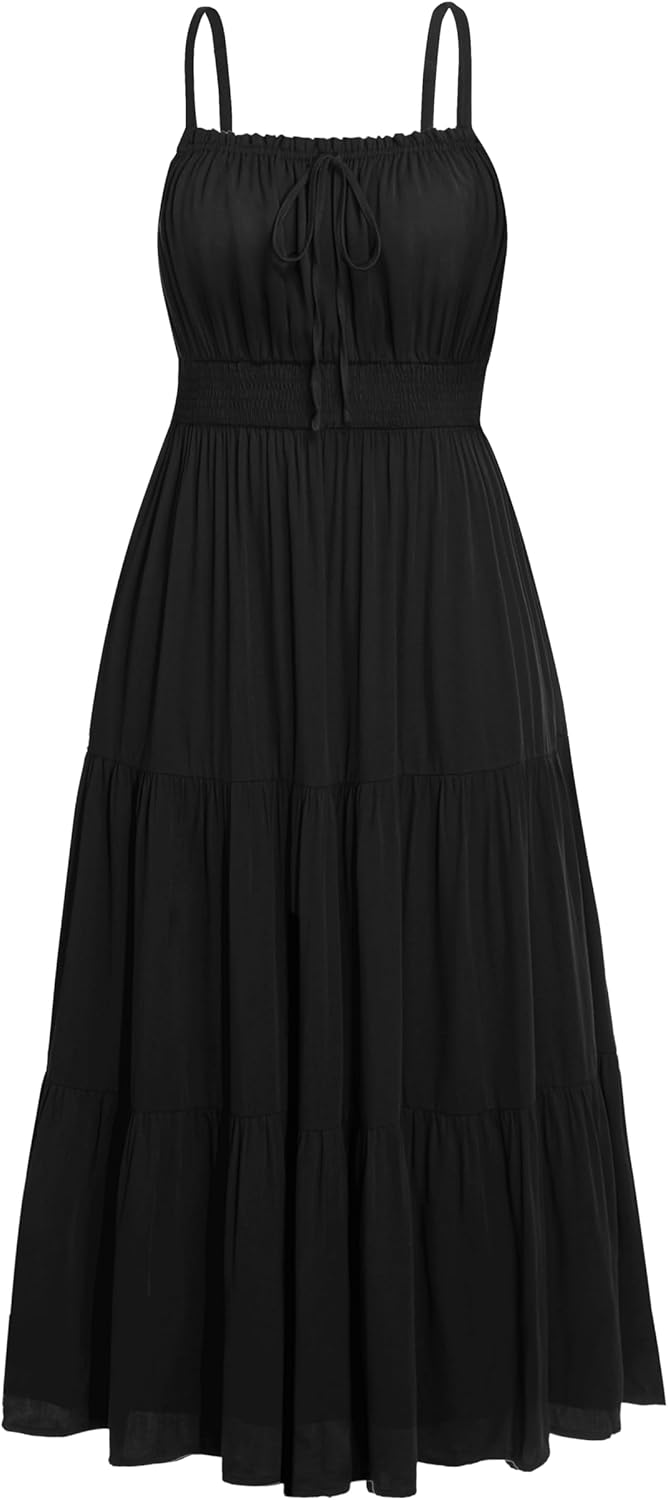 Plus Size Summer Dresses - Boho Maxi Sundress with Pockets Spaghetti Strap Long Casual Sun Dress for Vacation and Beach